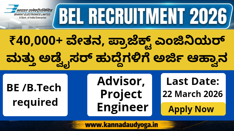BEL Recruitment 2026: ಬೆಲ್ ಸಂಸ್ಥೆಯಲ್ಲಿ ಭರ್ಜರಿ ನೇಮಕಾತಿ! ಪ್ರಾಜೆಕ್ಟ್ ಎಂಜಿನಿಯರ್ ಮತ್ತು ಅಡ್ವೈಸರ್ ಹುದ್ದೆಗಳಿಗೆ ಅರ್ಜಿ ಆಹ್ವಾನ – ₹40,000+ ವೇತನ